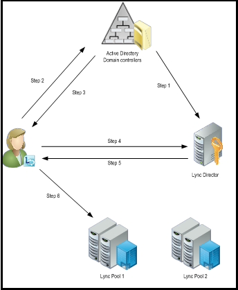 5. Because the Director is not the user’s home server, the Director redirects Lync to the user’s home server or pool.