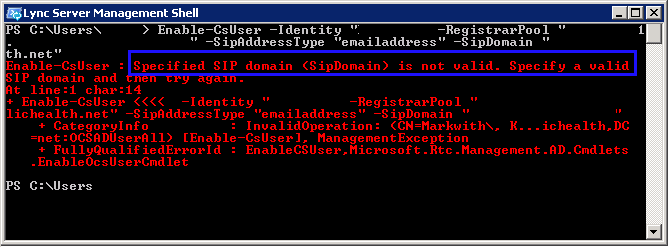 Issue: Enable-CsUser : Specified SIP domain
